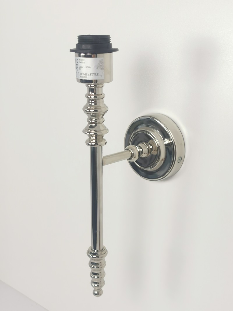 Wyjątkowy kinkiet niklowany Home&Style zachwyca elegancką formą i dbałością o detale. Wykonany z wysokiej jakości metalu pokrytego połyskującym niklem, stanowi stylowy element dekoracyjny, który wprowadza do wnętrza szyk i ponadczasowy blask. Dekoracyjne przetłoczenia i smukła konstrukcja nadają mu lekkości oraz subtelnego charakteru. Doskonale prezentuje się w aranżacjach klasycznych, nowojorskich, glamour oraz modern classic. Kinkiet posiada gwint E27, dzięki czemu umożliwia zastosowanie różnorodnych żarówek – LED, filamentowych lub klasycznych. To idealny wybór do salonu, sypialni, korytarza czy jadalni, gdzie liczy się elegancja i wyjątkowa gra światła.
