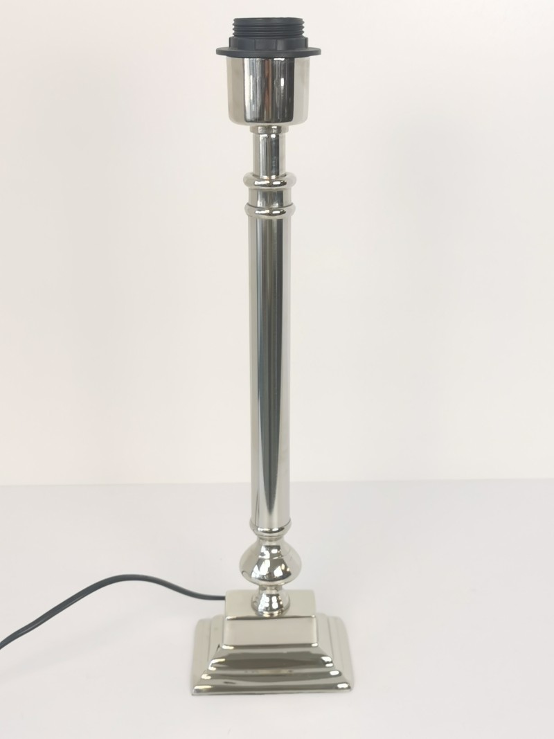 Dodaj do swojego wnętrza odrobinę klasyki i nowoczesności dzięki tej eleganckiej lampie stołowej. Wykonana z solidnego metalu o niklowanym, połyskującym wykończeniu, lampa łączy minimalistyczny design z luksusowym wyrazem. Smukły, prosty trzon lampy subtelnie ozdobiony detalami przechodzi w solidną, kwadratową podstawę, co zapewnia stabilność i stylowy wygląd. Dzięki uniwersalnemu designowi lampa doskonale wpasuje się w różne wnętrza, od klasycznych po nowoczesne, idealnie sprawdzając się w salonie, sypialni lub biurze. Standardowa oprawka na żarówkę E27 pozwala na łatwy dobór oświetlenia, a elegancki wygląd tej lampy czyni ją wyjątkowym elementem dekoracyjnym w każdym pomieszczeniu.