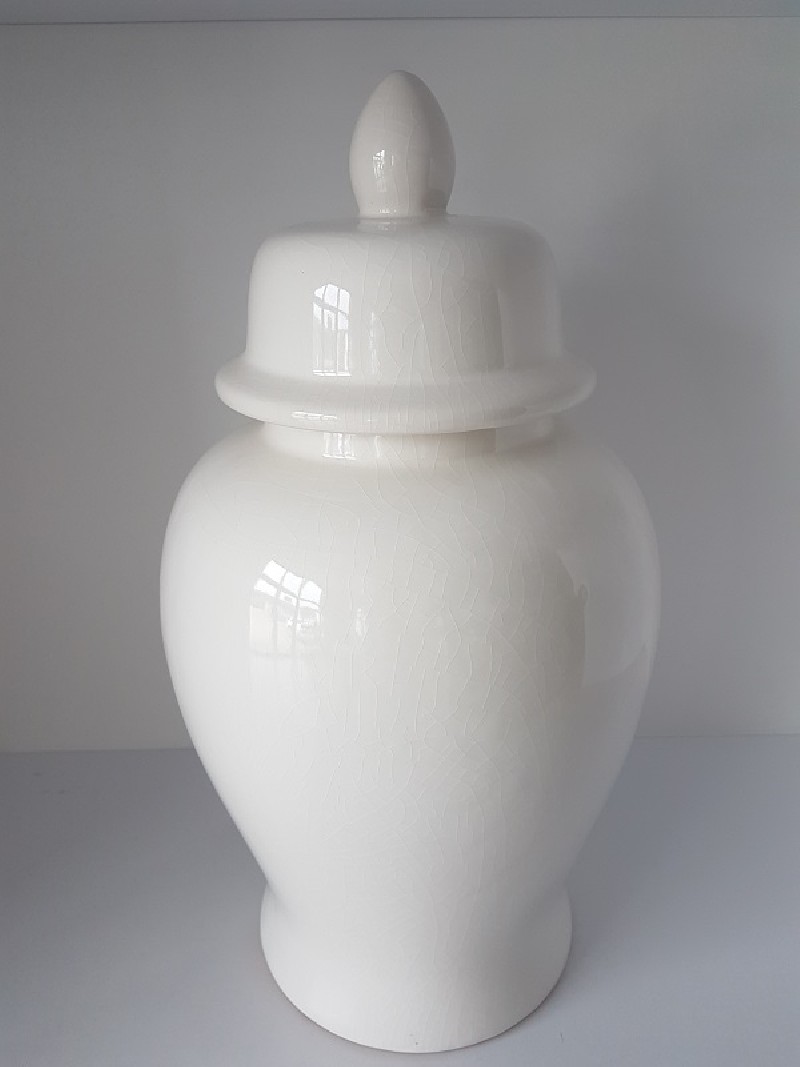 UWAGA!- Ceramiczna waza, amfora w kolorze śmietankowej bieli, wykonana metodą CRACKLE- drobne żyłki i pęknięcia pod lakierem